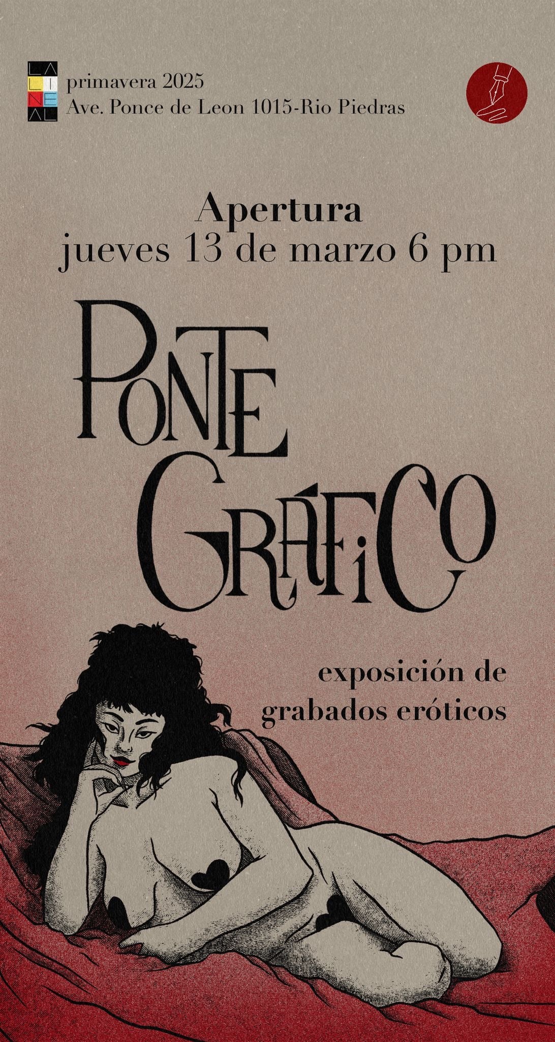 Según grandes teóricos, la intención de crear arte va de la mano con el líbido humano y que el deseo sexual que es en sí energía creativa. Ponte Gráfico es una muestra colectiva de obras que exploran el concepto de lo erótico desde la subjetividad de les artistas y que cuyo medio principal es alguna técnica de las artes gráficas. Las obras juegan con combinaciones variadas de contenidos gráficos (sexuales) y técnicas (artísticas) gráficas. La premisa de esta exposición acentúa la diversidad en la representación visual de lo sensual, lo erótico y lo sexual.