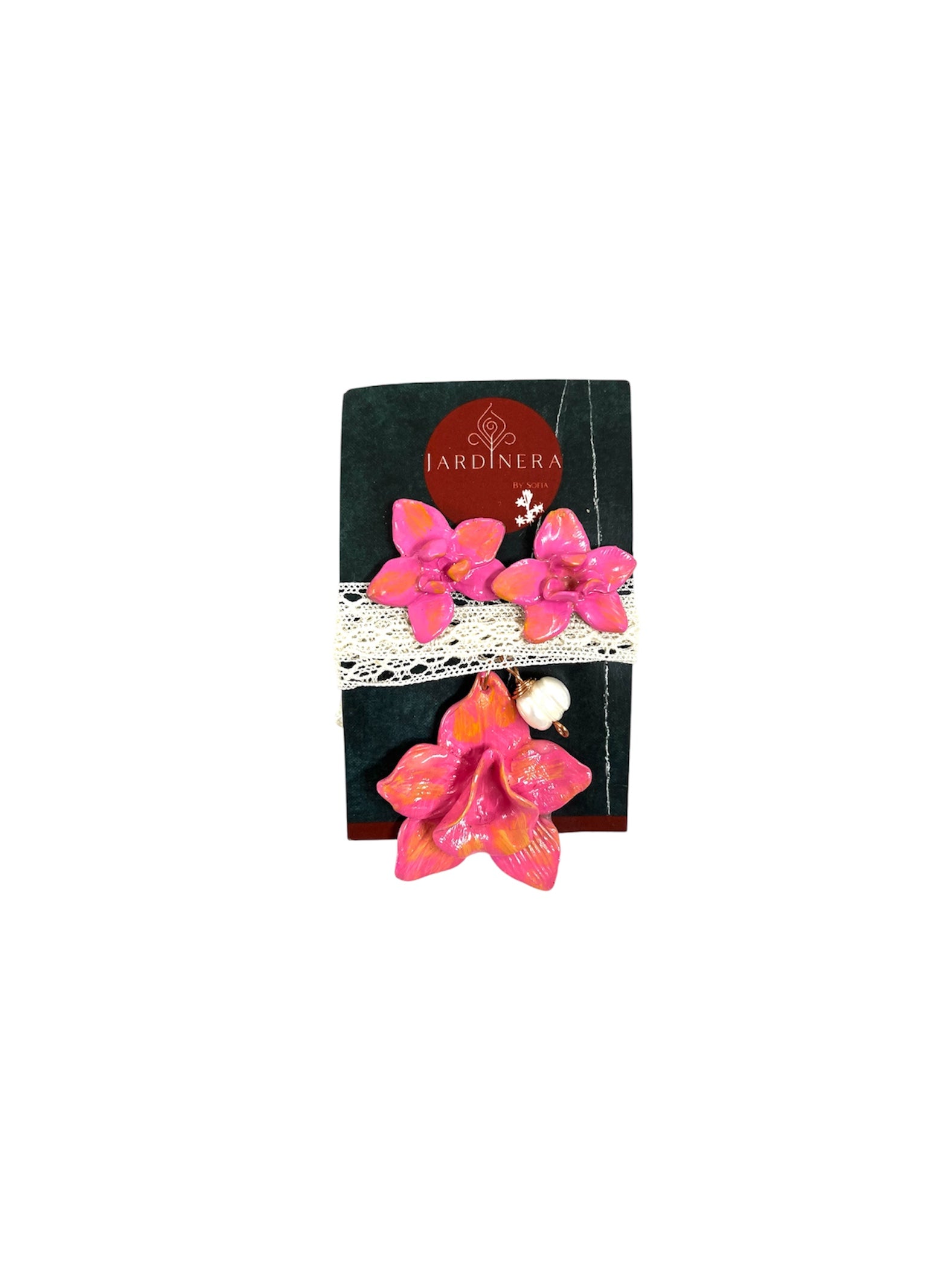 Pantallas y aretes en arcilla polimérica esculpidas y pintadas a mano.