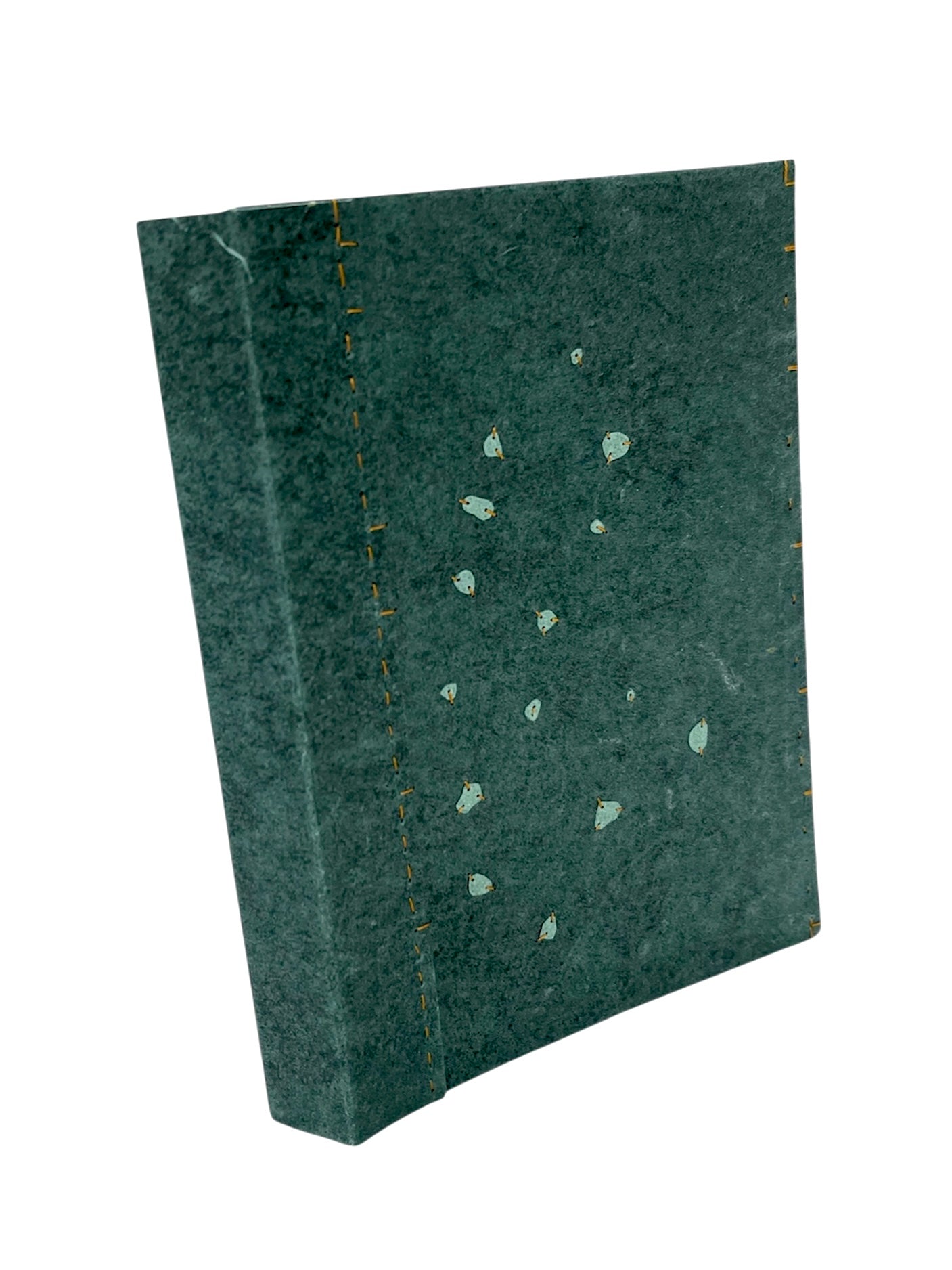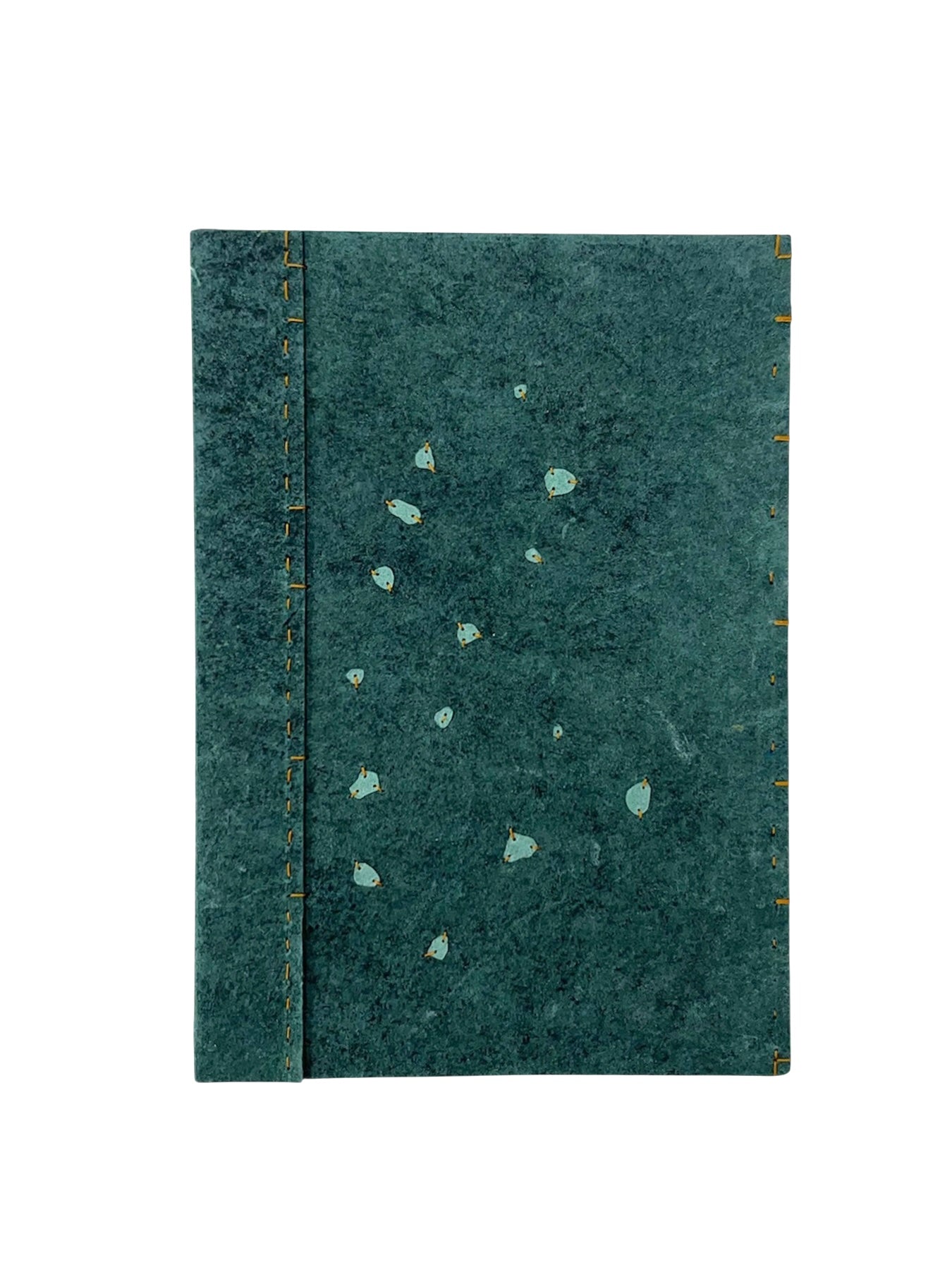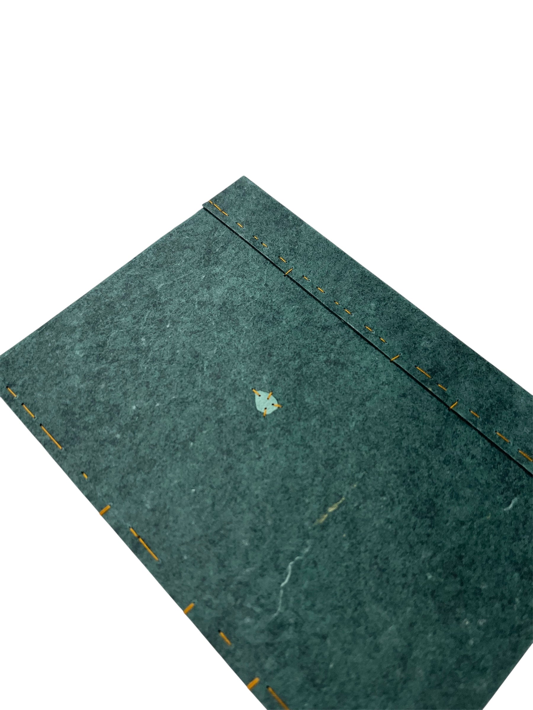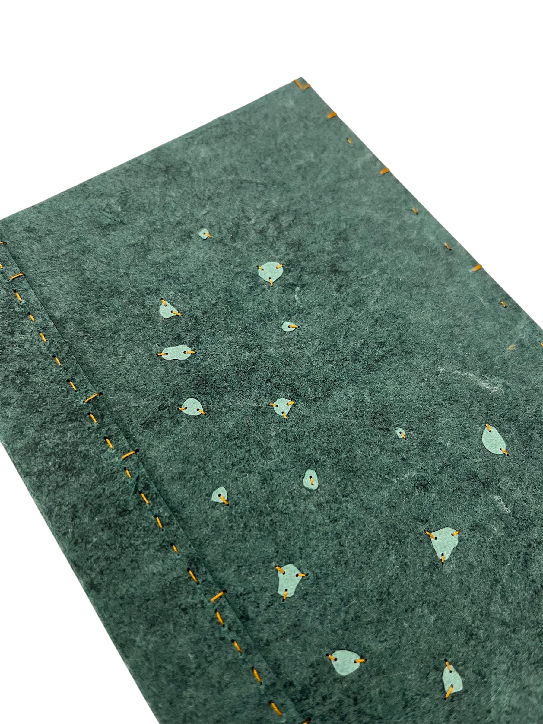 Cubiertas de papel hecho a mano con retazos de mahón. Recortes de papel hecho a mano bordados con hilo japónes.