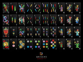 Briscas Series III contiene 40 cartas con diseños únicos impresos en alta calidad sobre "superior smooth cardstock" y relieve gloss en los outlines. El arte de atrás de las cartas es un patrón que permite que el diseño continúe de carta a carta al ponerla una al lado de la otra. Incluye 2 cartas adicionales con instrucciones de cómo jugar el juego.