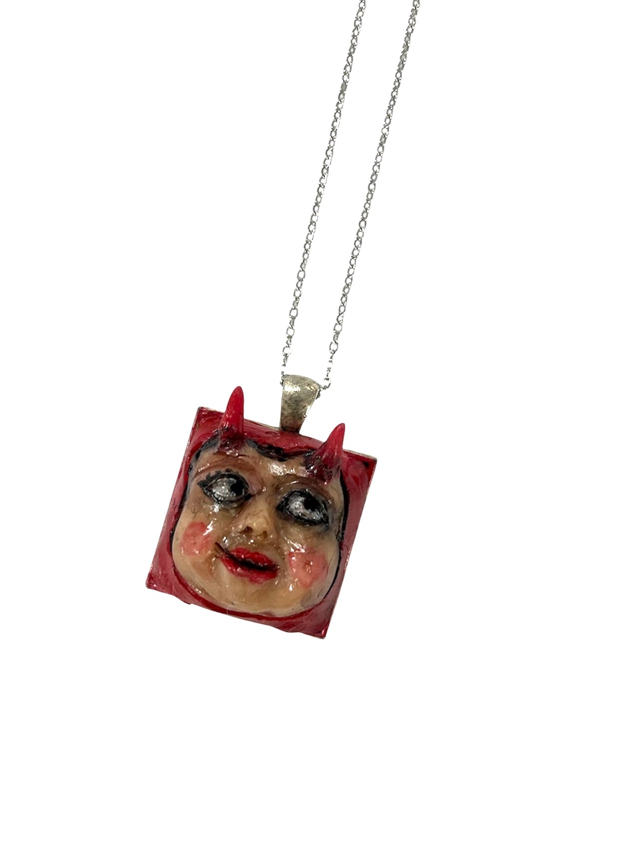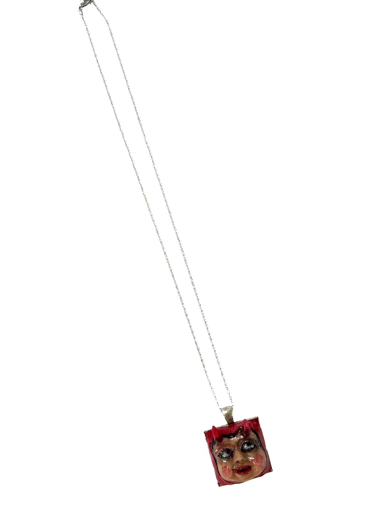Pendant en polímero y esmalte con cadena en stainless steel.